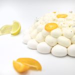 Dôme de meringue, compotée d’agrumes, chantilly fève Tonka, gel et suprèmes d’agrumes.